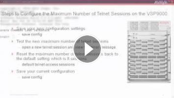 This Avaya Mentor tech tip will cover the steps to configure the maximum number of telnet sessions on the Avaya VSP9000. Produced by Wayne Godsoe.