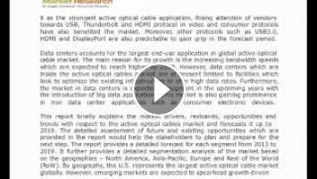 http://my.brainshark.com/Active-Optical-Cables-Market-Global-Industry-Forecast-2013-2019-712302493 - An active optical cable is a wiring technology which accepts the same electrical inputs as a conventional copper cable, but makes use of optical fiber between the connectors. In order to improve the cable's distance and speed performance without sacrificing its compatibility with standard electrical interfaces, the active optical cable uses electrical to optical conversion on the cable ends. The active optical cables market is largely driven by the rise in the processor speeds, growing demand for higher bandwidth speeds.