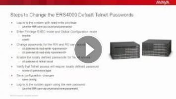 This video demonstrates how to change the Avaya ERS4000 default telnet passwords. Produced by Adonny Raphael.