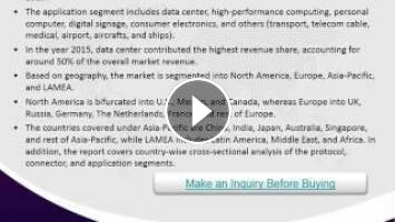 An active optical cable (AOC) is a cabling technology that uses optical fiber between the connectors to improve the cable’s performance. There is a rise in demand for AOC as it serves as an alternative to copper cable due to its various advantages such as small bend radius for easy installment, low power consumption, and lightweight. Applications of these cables have expanded, from high-performance computers to networking and storage with the support of many protocols. In addition, AOCs rely on different protocols, such as InfiniBand, USB, and Ethernet, for data transmission. The active optical cable market was valued at $481.3 million in 2015. Furthermore, the active optical cable market is projected to generate about $3,480.7 million registering a CAGR of 32.7% from 2016 to 2022. Certain segments such as PCI Express (PCIe), Serial Attached SCSI (SAS) and Thunderbolt are increasing the market size and generating potential customers for the sector worldwide.