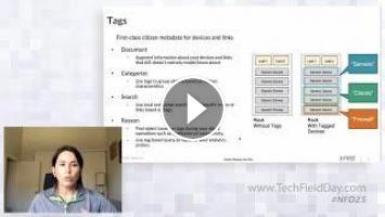 Claire demos two features in Apstra that help operators with Day 2 operations: connectivity templates and tagging. Connectivity templates allow data center teams to pre-provision and bulk-assign downstream connectivity to servers, firewalls, and other systems. Tags enable them to add metadata to devices for activities like documenting and grouping servers or running analytics for a specific group of devices or links.