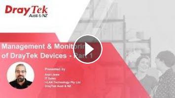 In this webinar we look at what is available to manage and monitor your DrayTek devices, and what tools are available to troubleshoot any network issues you may encounter. Today we will start with DrayTek routers and management options available, and continue this discussion in our next webinar where we look at additional management options. Upcoming webinars will look at Wi-Fi management options and central software based management platforms.