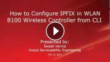 This Video demonstrates how to Configure IPFIX in WLAN 8100 Wireless Controller from CLI. Produced by Swasti Verma.